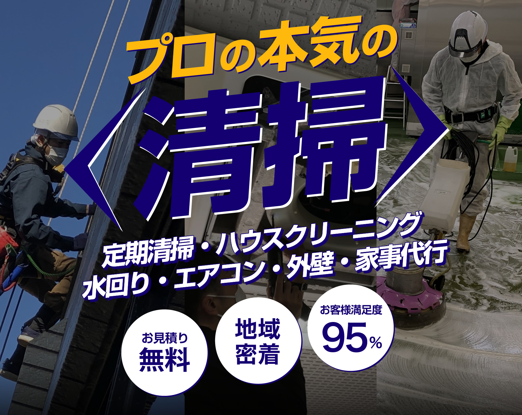 他社では断られた清掃業務や、ちょっとしたお掃除でもお気軽にお問合せください。対応できる業務の幅の広さは、地域ナンバーワンです。